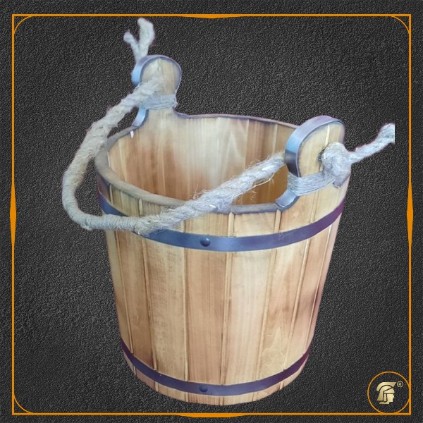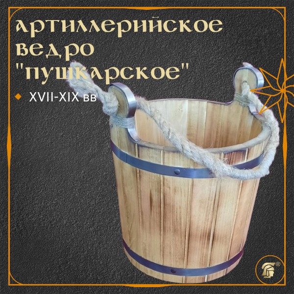 Деревянное ведро, сделанное по старинной бондарной технологии. Его форма и конструкция основаны на многовековом крестьянском опыте и практичных решениях армии. В артиллерии XVII–XIX веков ведро было частью штатного снаряжения орудия. Оно имеет тот самый суровый вид, который был характерен для ведер на артиллерийских палубах кораблей или в полевых батареях.