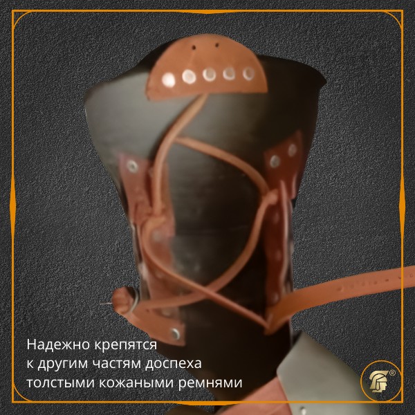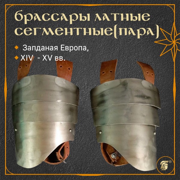 Брассары предназначены для защиты плеча и верхней части руки. Простая и функциональная модель, выполненная из прочной стали с кожаными элементами для надежной фиксации. Легко интегрируются в комплекс латного доспеха.