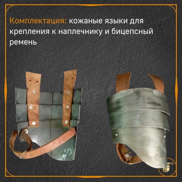 - Комплектация: кожаные языки для крепления к наплечнику, бицепсный ремень