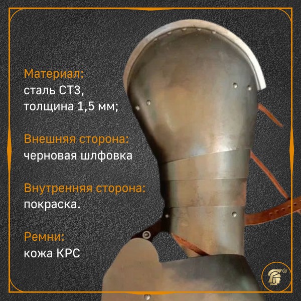 Артикул: состоит из латных наплечников AH-070, брассаров сегментных AH-032, налокотников AH-069, наручей AH-035