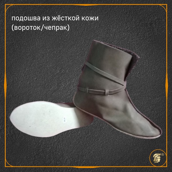 подошва двойная из жёсткой кожи (вороток/чепрак), пришитая к верху,