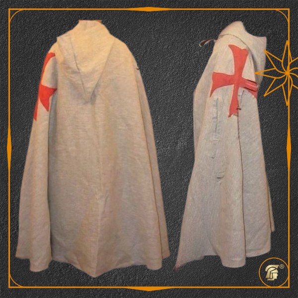 Плащ "полусолнце" с капюшоном, льняной, без подкладки с символикой ордена. Это самый распространенный тип средневекового плаща в Европе.