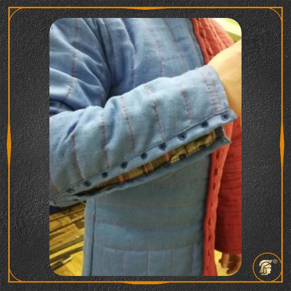 Поддоспешник стеганый — важная часть защитного комплекта, служащая амортизирующим слоем под металлическими доспехами. Он снижает силу удара, защищает от натирания и делает ношение доспеха значительно удобнее.